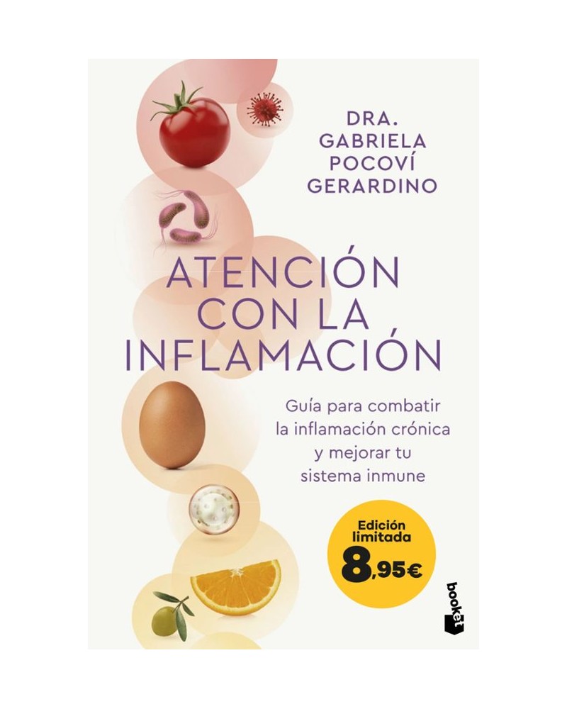 La guía definitiva para combatir la inflamación crónica y reforzar nuestro sistema inmunitario a través de la alimentación. Migrañas, problemas de tiroides, gastritis, intestino irritable, enfermedades autoinmunes, sobrepeso por más dietas que hagas, acné, vientre hinchado, estreñimiento, retención de líquidos, dolores musculares, baja energía... este es solo el comienzo de una lista de enfermedades y condiciones que pueden estar vinculadas a un sistema inmunitario que te esté gritando: ¡Estamos inflamados! El sistema inmunitario es el responsable de muchas de las enfermedades y el culpable de que, a veces, te encuentres mal sin saber por qué. Reconocer que podemos sufrir de inflamación crónica, y saber cómo combatirla a través de una alimentación y un estilo de vida antiinflamatorios, puede ayudarnos a mejorar nuestra calidad de vida. En este libro, la Dra. Gabriela Pocovi, especialista en el impacto que tiene la alimentación en nuestro sistema inmunitario, te enseñará a tomar medidas claves para reforzarlo, combatir la inflamación y recuperar tu salud, partiendo del cuidado del intestino y su microbiota. No puedes cambiar tus genes, pero si cuidas tus intestinos y tu sistema inmune puedes cambiar tu vida.