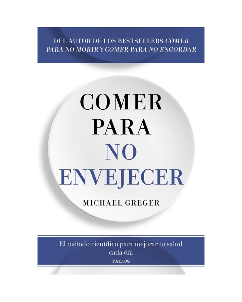 Del autor de los bestsellers Comer para no morir y Comer para no engordar, nos llega Comer para no envejecer, una guía que incluye las últimas investigaciones en la ciencia de la longevidad, con la que descubriremos las claves para envejecer de manera saludable. Todos queremos mantenernos sanos a medida que nos hacemos mayores, pero, con tantas afirmaciones diferentes puede ser difícil saber cuál es el mejor consejo a seguir. En Comer para no envejecer, el mundialmente reconocido doctor Michael Greger analiza las mejores investigaciones sobre el envejecimiento para ofrecernos una guía completa y óptima para alargar la vida y ralentizar los efectos adversos del envejecimiento. Inspirado por los hábitos alimenticios y el estilo de vida de los habitantes de las llamadas «zonas azules», donde la esperanza de vida es excepcionalmente alta, el doctor Greger ofrece métodos simples, accesibles y empíricos para preservar las funciones corporales que nos mantienen jóvenes y activos tanto física como mentalmente. En este exhaustivo estudio, no solo encontraremos estrategias prácticas y sencillas para vivir una vida más larga y saludable, sino que también aprenderemos a disfrutar de cada momento.