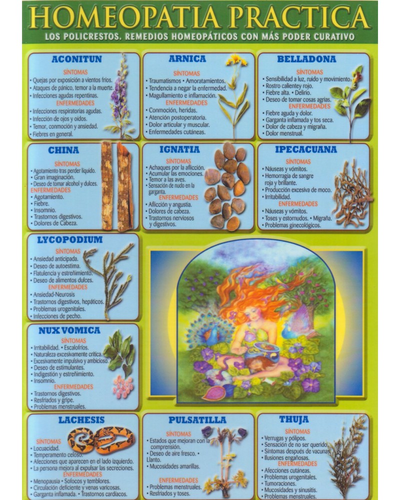 LAMINA DE CONSULTA DE LOS REMEDIOS HOMEOPATICOS DE MAYOR EFECTO (POLICRESTOS) - TAMAÑO: DIN-4. - DOBLE CARA (aquí solo se muestra una de las caras). - PLASTIFICADA. ...