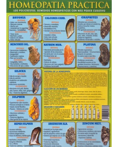 LAMINA DE CONSULTA DE LOS REMEDIOS HOMEOPATICOS DE MAYOR EFECTO (POLICRESTOS) - TAMAÑO: DIN-4. - DOBLE CARA (aquí solo se muestra una de las caras). - PLASTIFICADA.